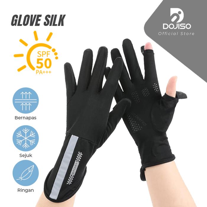 Glove Silk 2369 Sarung Tangan Jari Terbuka Anti UV+ Wanita Layar Sentuh Sutra Es Sejuk Tipis Bersirkulasi Anti-Slip