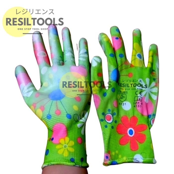 Sarung Tangan Kerja Karet Wanita Motif Bunga Anti Licin Lapis Nylon WGRFN