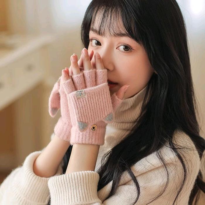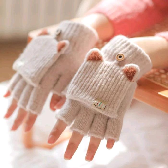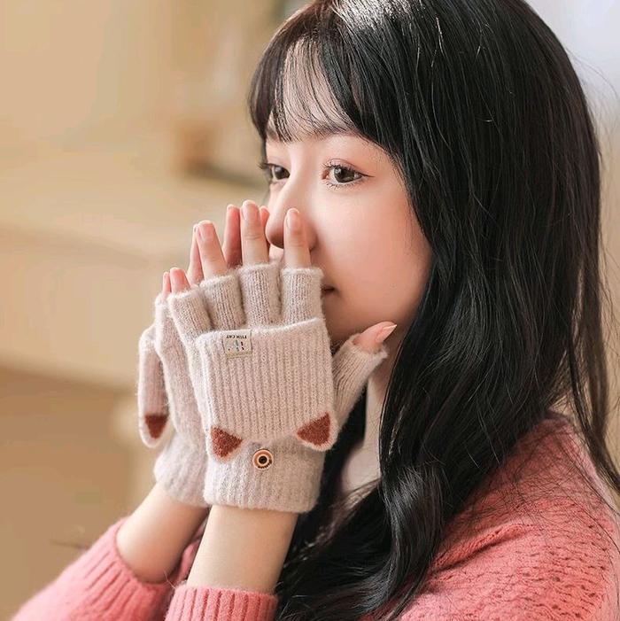 Sarung Tangan Motor Wanita Lucu Rajut Tebal - Gloves (Stg ptg 5 jr)
