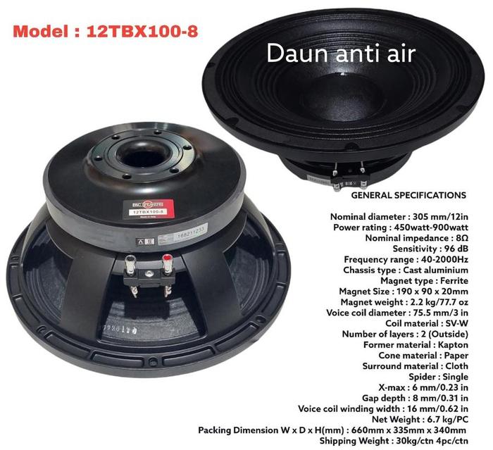 Speaker Komponen B&C 12TBX100/12 TBX100 12 INCH VOICE 4IN DAN 3IN