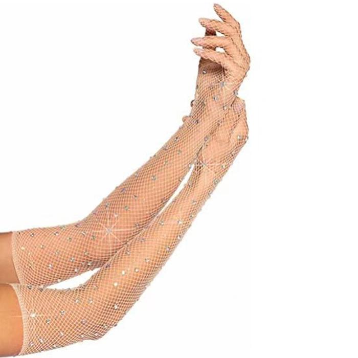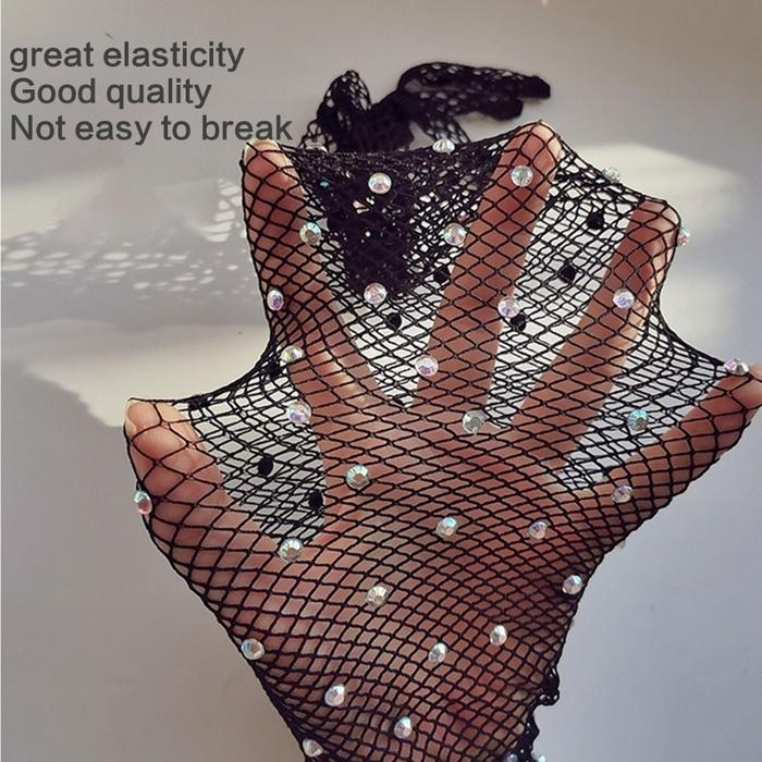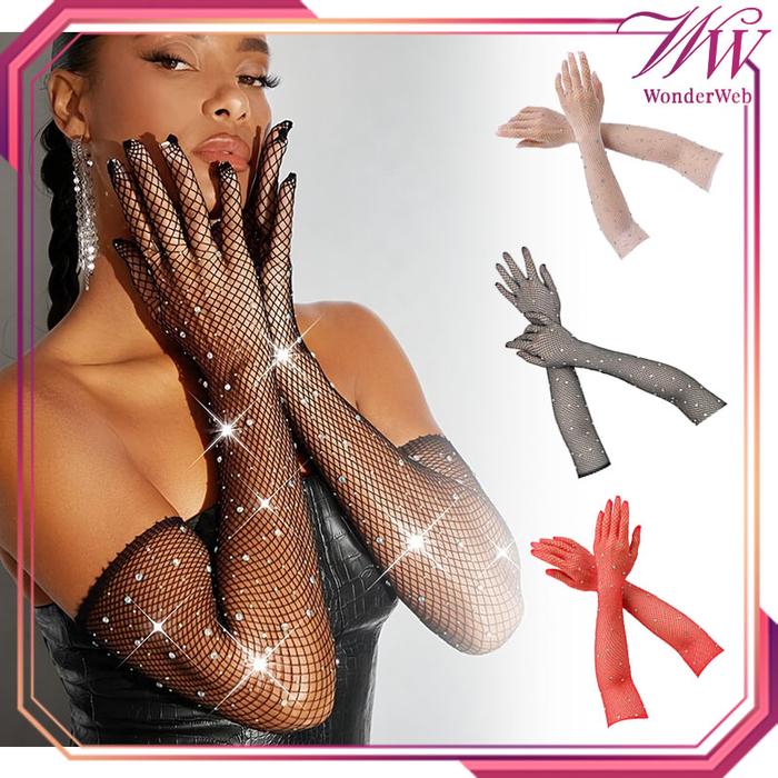 1pair Sarung Tangan Glitter Universal Sarung Tangan Jaring Panjang Fashion Rhinestone Sarung Tangan Jala Gloves Bride
