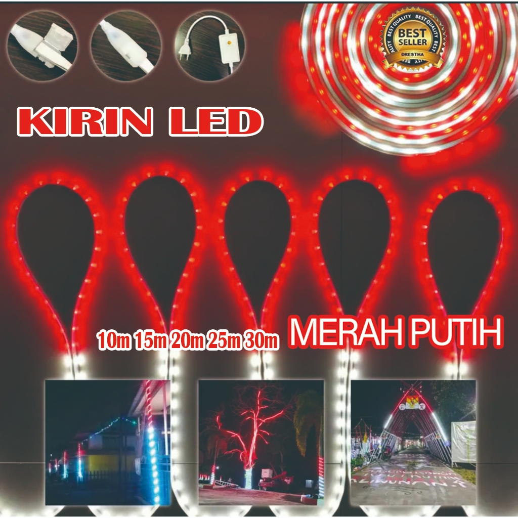 Lamp LED Strip Outdoor Merah Putih Termasuk Adaptor 220V FULL 15-30M / Lampu Hias AntiAir LED 2835 3528 Strip Agustus