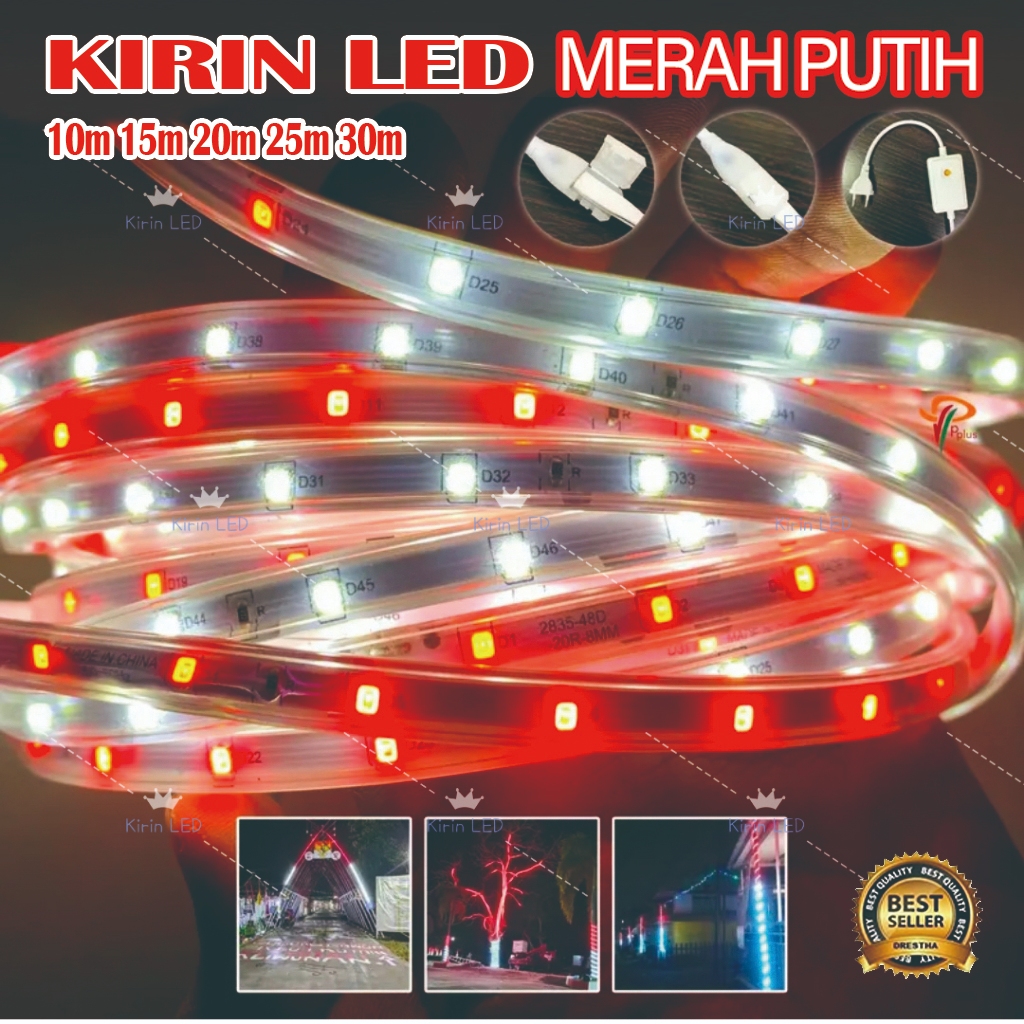 Lamp LED Strip Outdoor Merah Putih Termasuk Adaptor 220V FULL 15-30M / Lampu Hias AntiAir LED 2835 3528 Strip Agustus