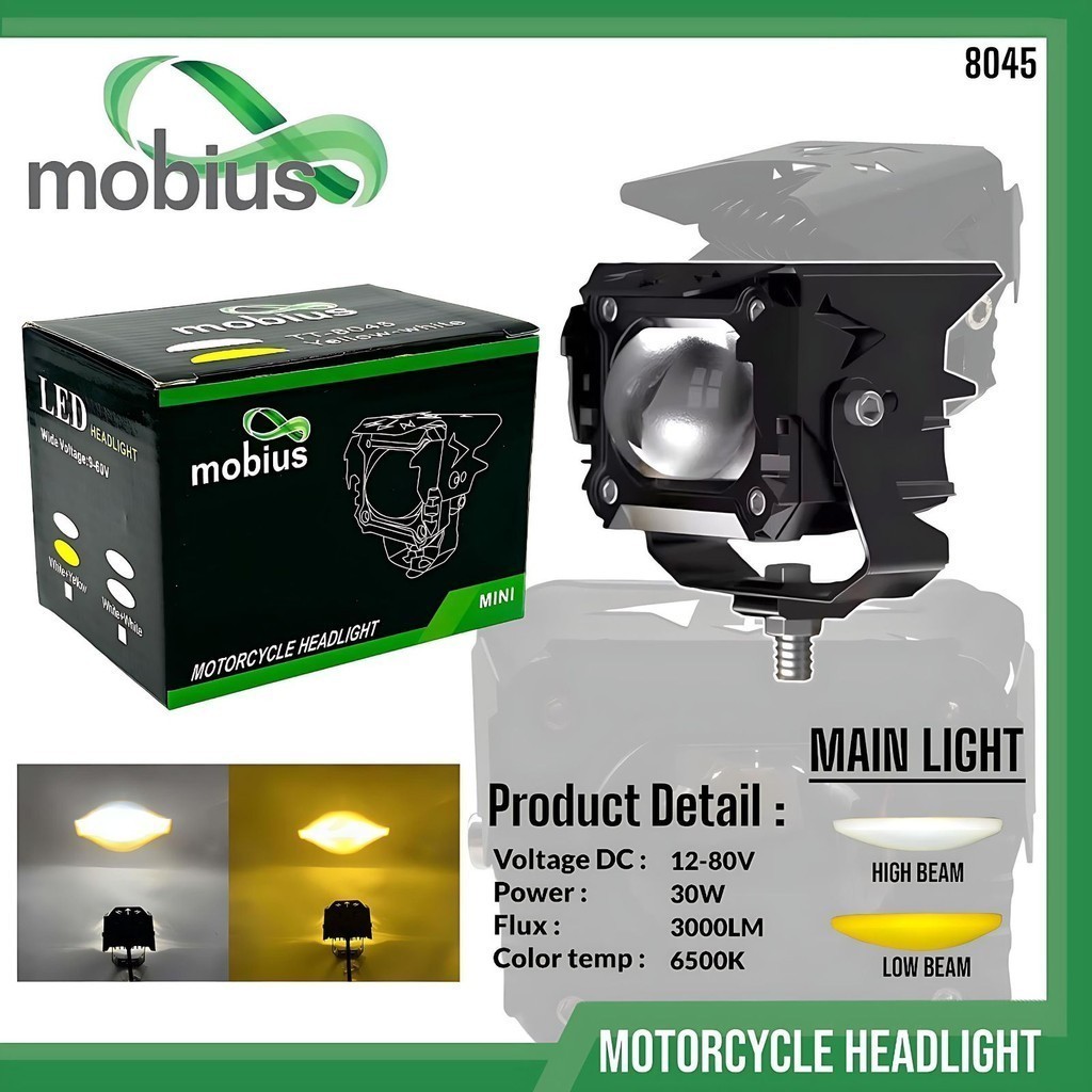 LAMPU TEMBAK KOTAK MOBIUS 1 LENSA PLUS DEVIL EYE 8045 CAHAYA PUTIH KUNING UNIVERSAL