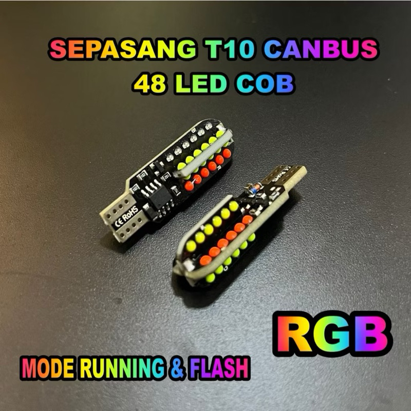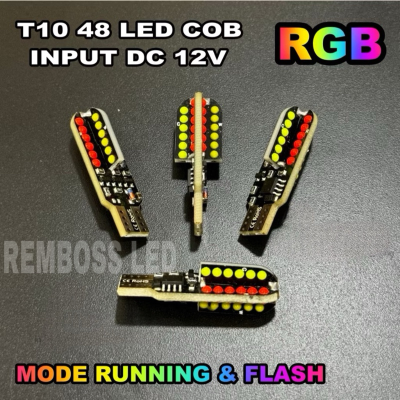 LAMPU LED COLOK SEIN T10 48 LED COB RUNNING FLASH NYALA RGB SEIN SENJA MOTOR MOBIL PELANGI RGB