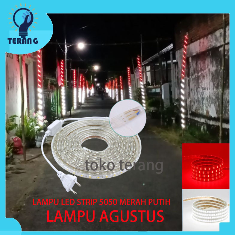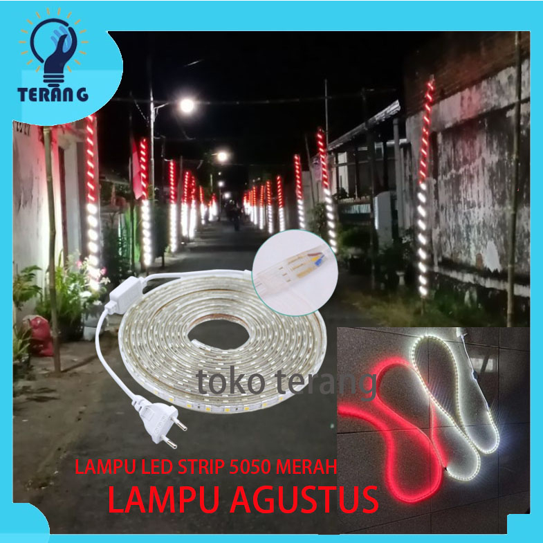 LAMPU LED STRIP 5050 MERAH PUTIH PANJANG 4 METER 6METER 8METER 10METER + ADAPTOR LAMPU AGUSTUS