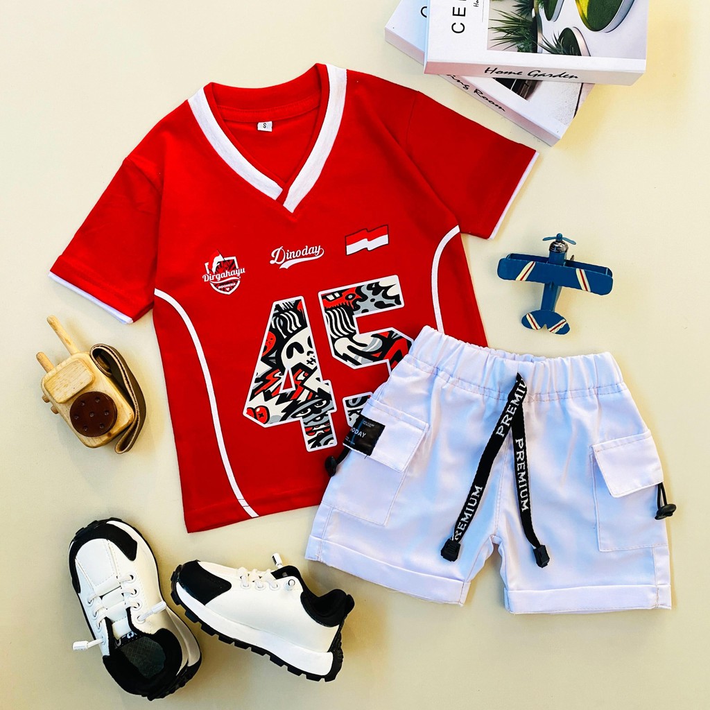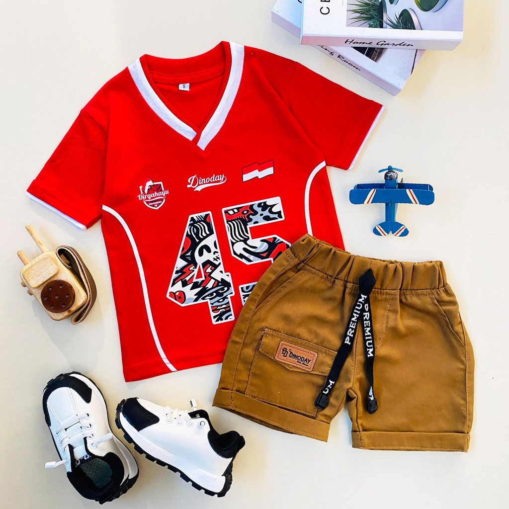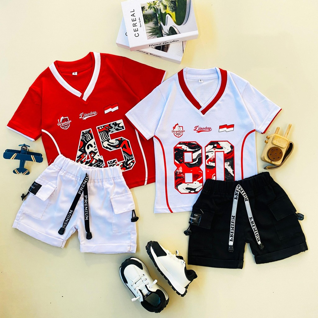 Setelan Baju Anak Laki-laki Perempuan Setelan Kemerdekaan 17 Agustusan Baju Anak Celana Cargo 1-9 Tahun Terbaru