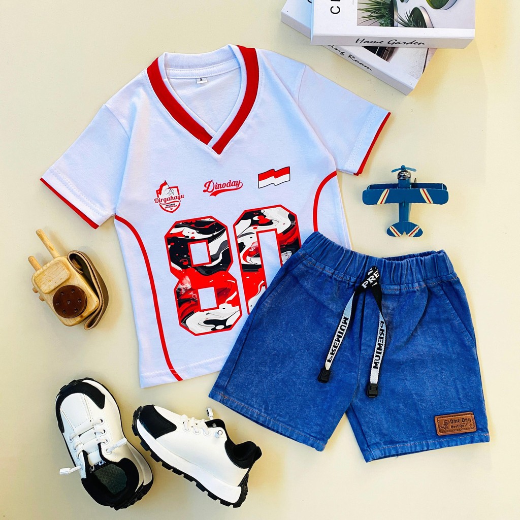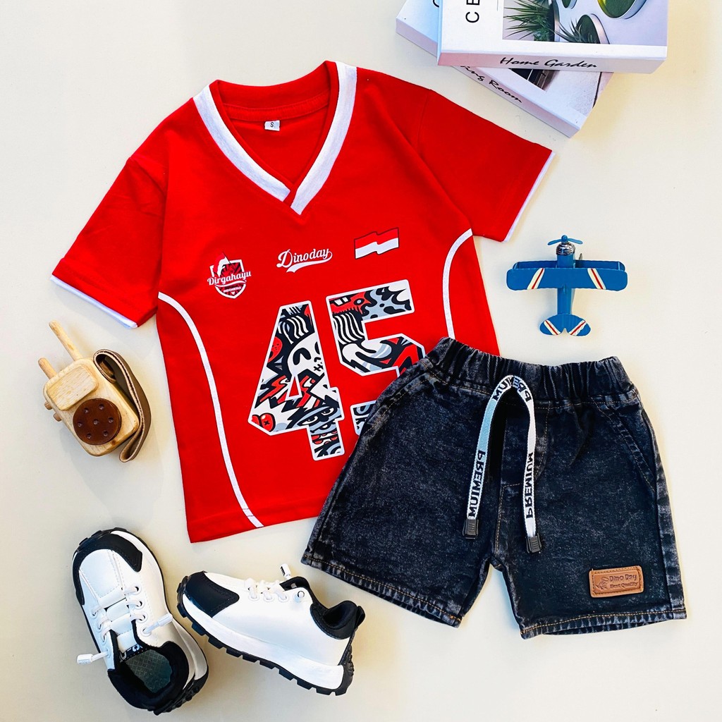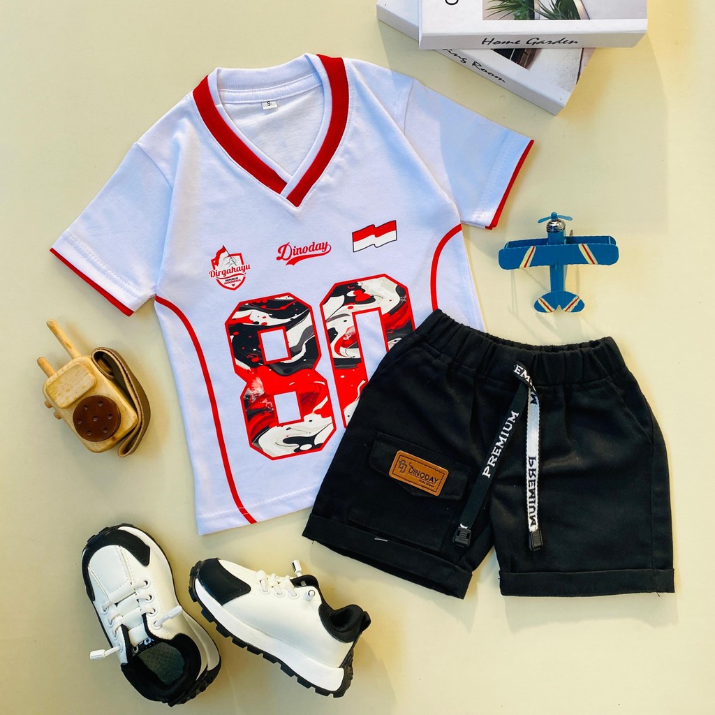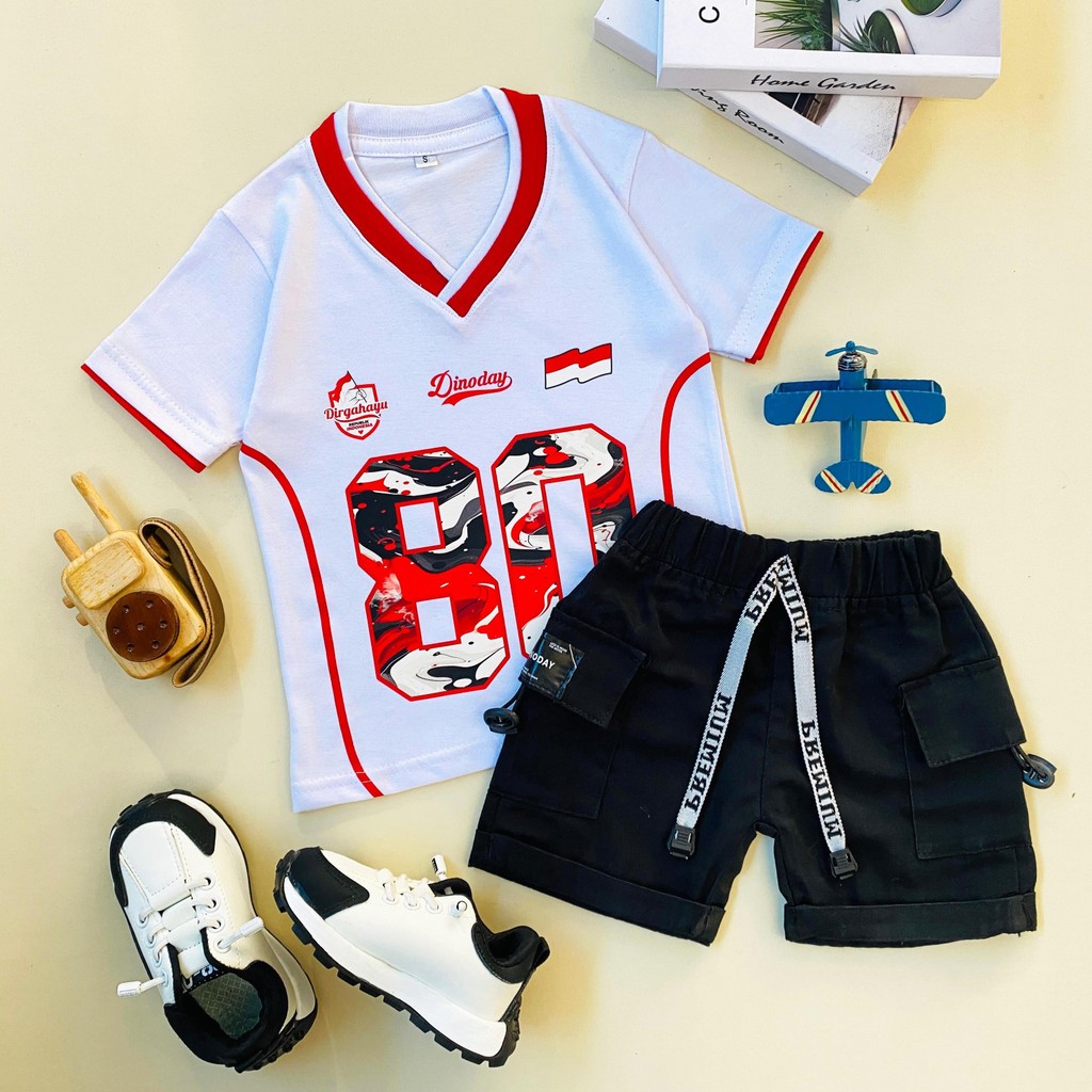 Setelan Baju Anak Laki-laki Perempuan Setelan Kemerdekaan 17 Agustusan Baju Anak Celana Cargo 1-9 Tahun Terbaru
