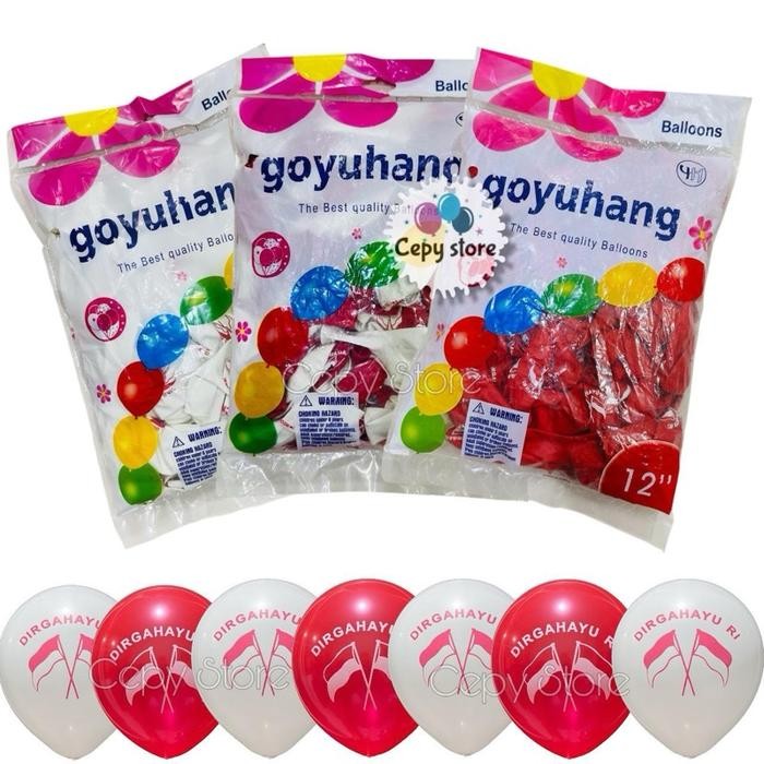 200GR - ISI 100Pcs Balon Latex DIRGAHAYU RI / Balon Merah Putih 17 Agustus