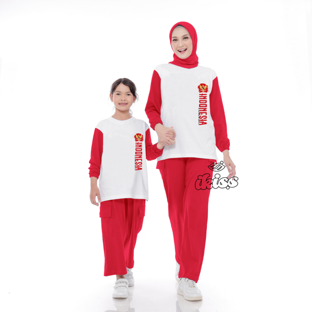 Setelan Kaos Couple Ibu dan Anak Agustus Kemerdekaan Perempuan Katun Premium Tebal Wanita Viral