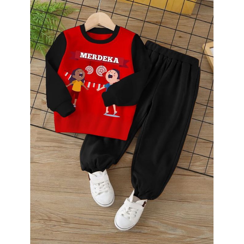 SETELAN PANJANG MODEL MANSET MOTIF EDISI 17 AGUSTUS MAKAN KERUPUK BISA