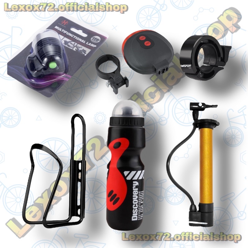 Paket aksesoris sepeda termurah _ pompa holde & botol lampu depan & belakang bel cincin