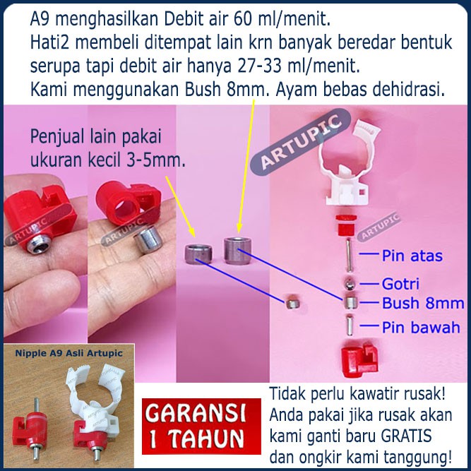Nipple Nippel Nepel Nipel A9+Mangkok Ayam Broiler Puyuh A9+Mangkok seperti A5-Samping