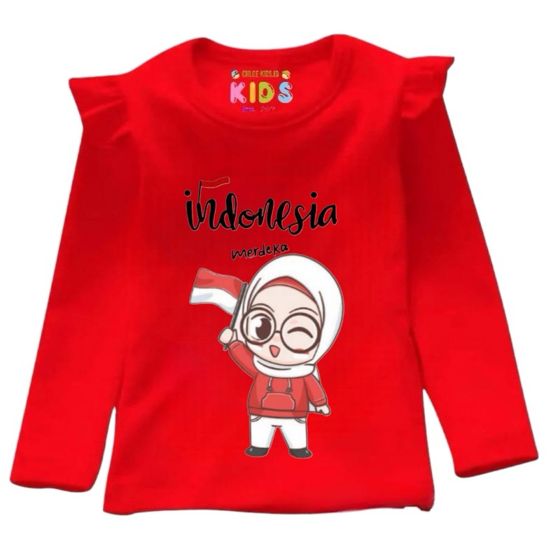 KAOS PANJANG RUFLE ANAK PEREMPUAN KAOS LENGAN PANJANG ANAK ANAK LUCU KAOS INDONESIA MERDEKA KAOS 17 AGUSTUS