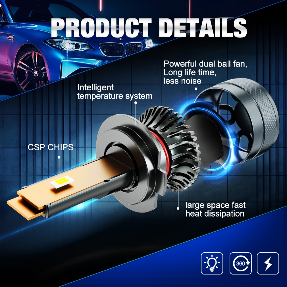 XSTORM 2PCS H4 LED 80W H11 H1 H7 HB3 9005 HB4 HIR2 9012 LED CANBUS 20000LM LAMPU DEPAN MOBIL CSP 3570 6000K
