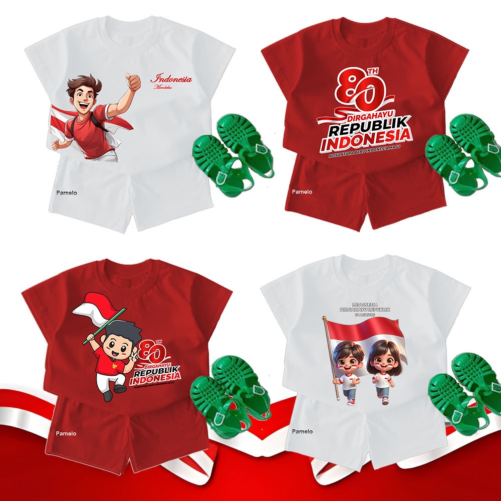Pamelo.id Setelan Anak 17 Agustus Dirgahayu80 2025 Katun Combad 24s Baju anak Merah putih Baju Anak katun combed 24s Stelan merah putih murah katun