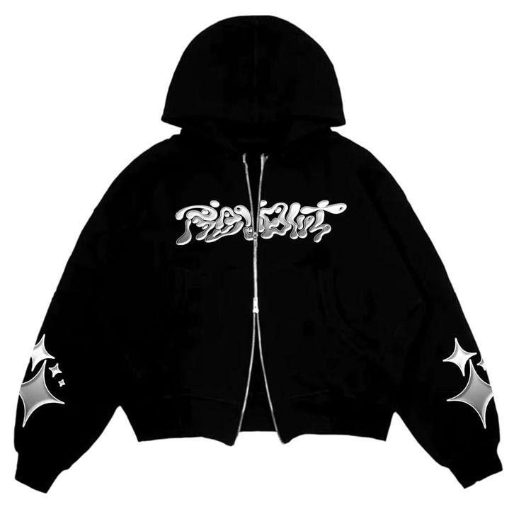 G-LOOK Hoodie Boxy Double Zipper Neregulat Hitam
