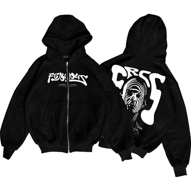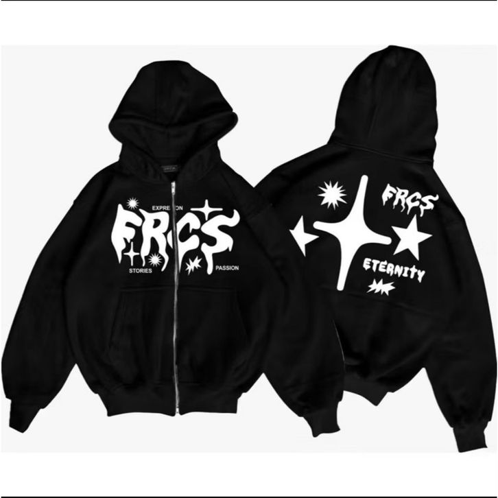 Hoodie Boxy Zipper Black Human Basic - Jaket Sleting Skena Boxy Oversize Terbaru Pria & Wanita Katun Flacee 280GSM