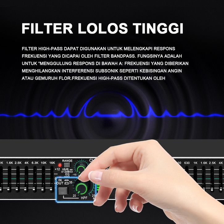 BOMGE EQX-215 Equalizer profesional dengan antarmuka keluaran subwoofer independen, equalizer 15-band ganda