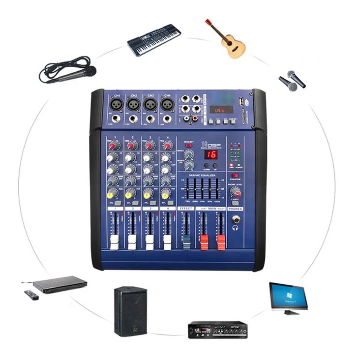 BOMGE PMX 602 Professional Audio Mixer Power Mixer with USB DJ Sound Mixing Console MP3 Jack 6 Channel