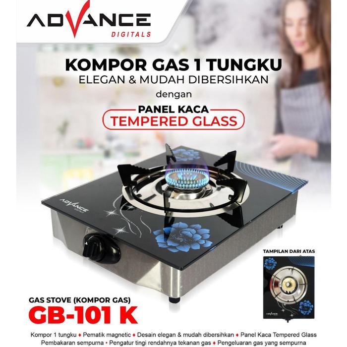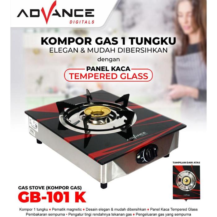 Kompor Gas Kaca 1 Tungku ADVANCE GB-101 K - Tempered Glass