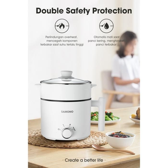 (BISA NEW) Samono Panci Listrik Hotpot Multi Cooker 15L Dengan Kukusan Tutup Kaca 150 Watt (SW-DG04S) - SW-DG04S