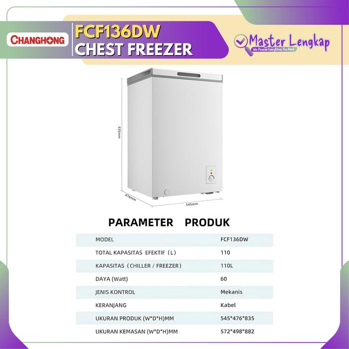 CHANGHONG CHEST FREEZER FCF136DW / FCF-136-DW / FCF 136 DW