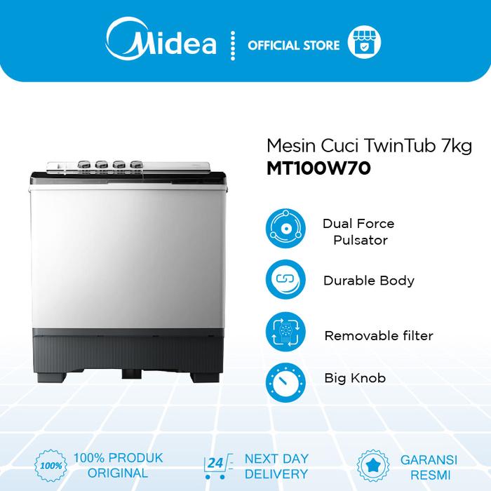 Midea Mesin Cuci 2 Tabung/Twin Tub Kapasitas 7 Kg - Model MT100W70