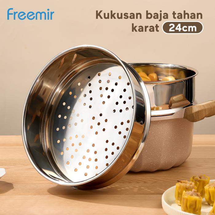 (Bisa NEW) Freemir Kukusan 24 cm Stainless Steel Steamer Multifungsi Kukusan Anti Lengket Serbaguna Kitchenware