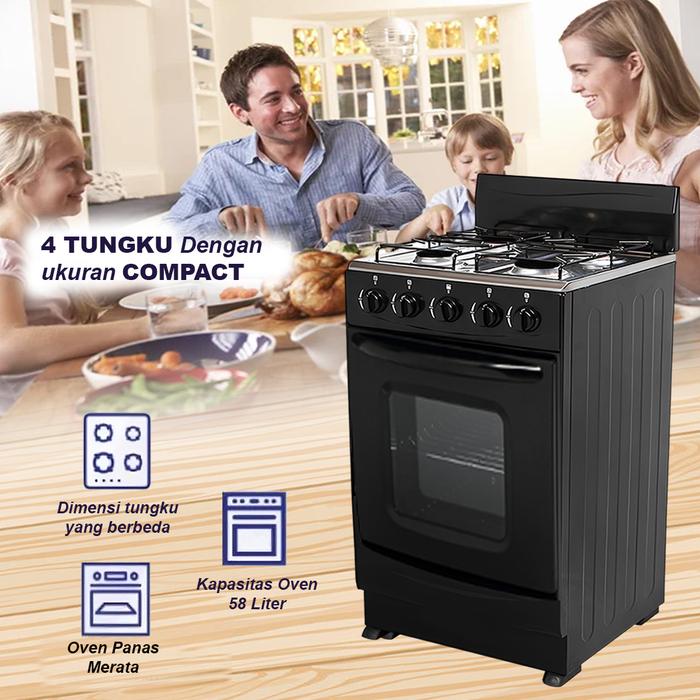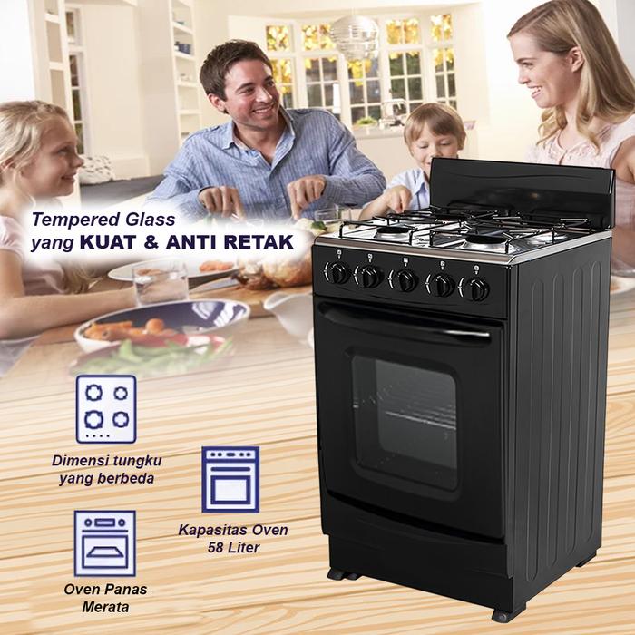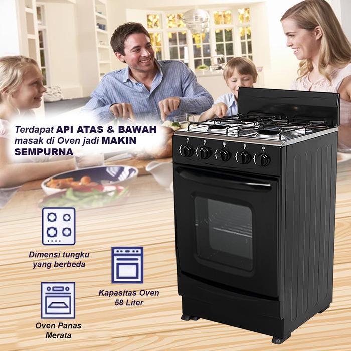 Kompor Gas 4 Tungku Free Standing + Oven Api Sempurna Matang lebih merata 58 Liter.