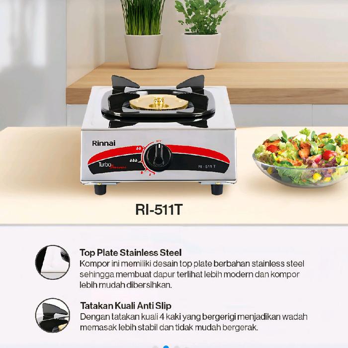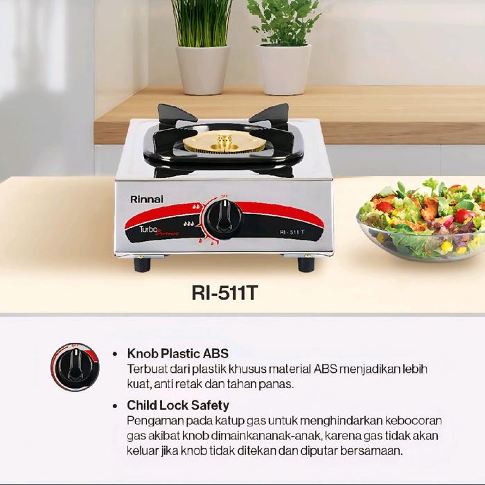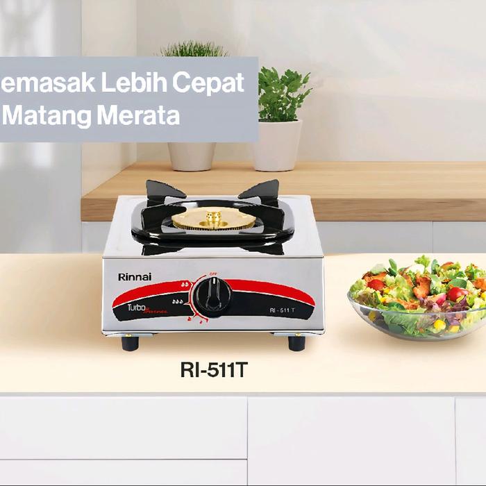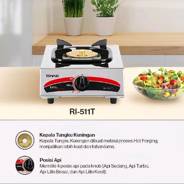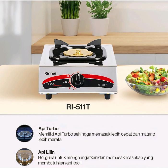 Kompor Rinnai 1 Tungku Api Turbo RI511T body stainless body burner besar dengan fitur tambahan api lilin