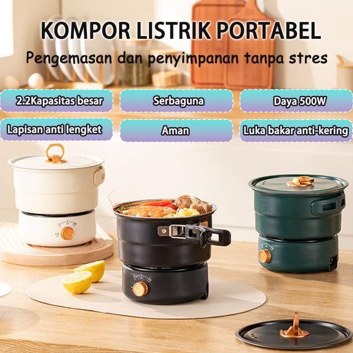 Panci Listrik Lipat Portabel 2.2L Panci Pemanggang Wajan & Kukusan Multifungsi - GREEN