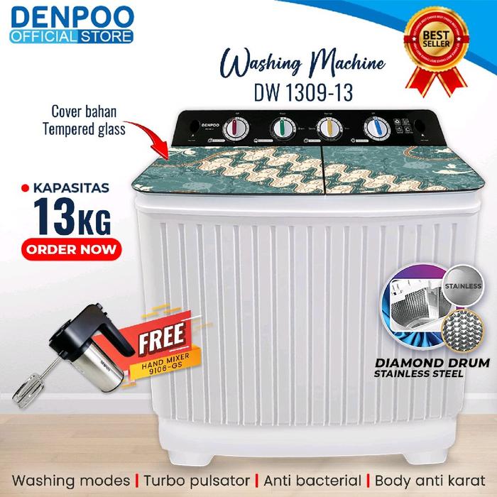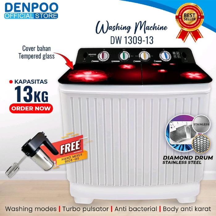 Denpoo DW-1309 Platinum Mesin Cuci Twin Tub Double Drum 13KG