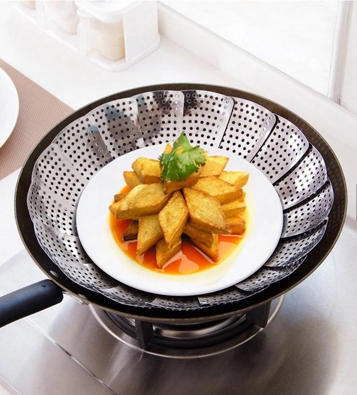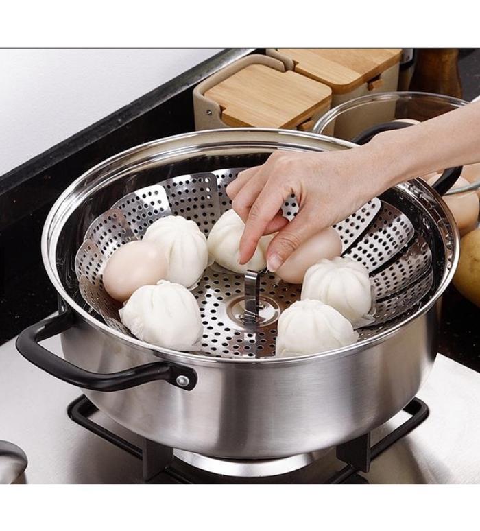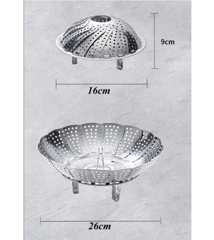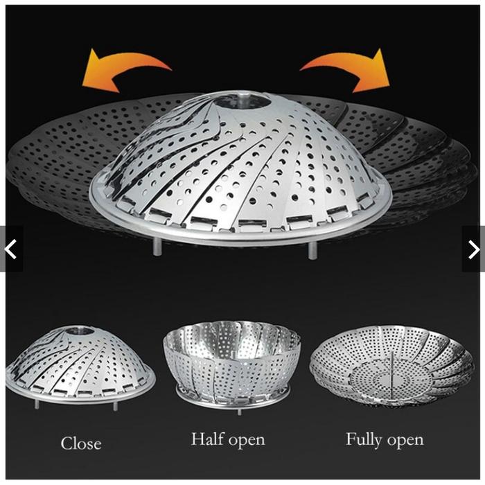 Saringan Stainless / Kukusan Steamer Fleksibel Stainless Steel Steamer Lipat Multifungsi