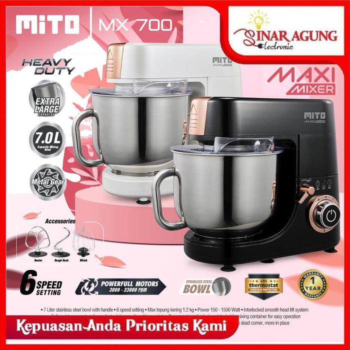 MITO STAND MIXER MX700 STAINLESS BOWL MIXER 7L HITAM