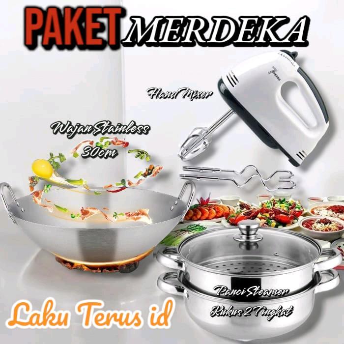 LT 049 Paket Wajan Stainless 30cm Mixer dan Panci Kukus 2 Tingkat - Kitchenware Steel