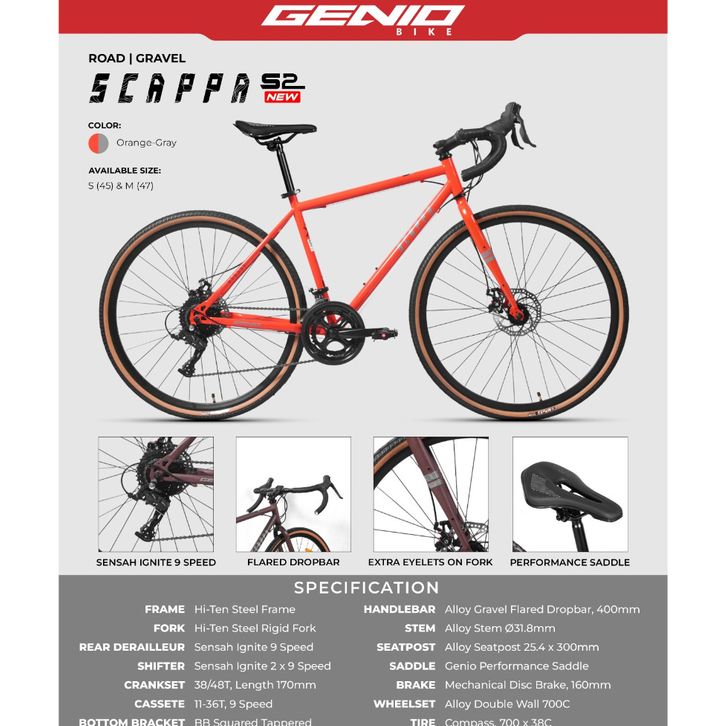 TERLARIS SEPEDA BALAP GENIO SCAPPA S2 GRAVEL 700CC ROADBIKE