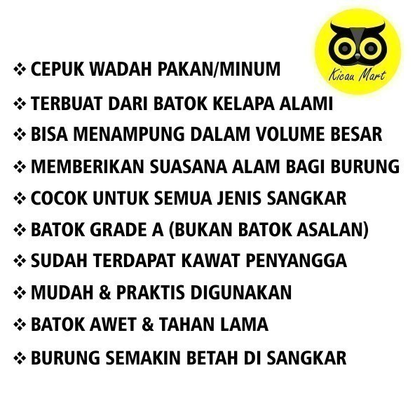 KICAU MART BATOK KELAPA WADAH PAKAN MINUM BURUNG AYAM BEBEK SARANG BERTELUR TEMPAT TIDUR SUGAR GLIDER CPKBATOK
