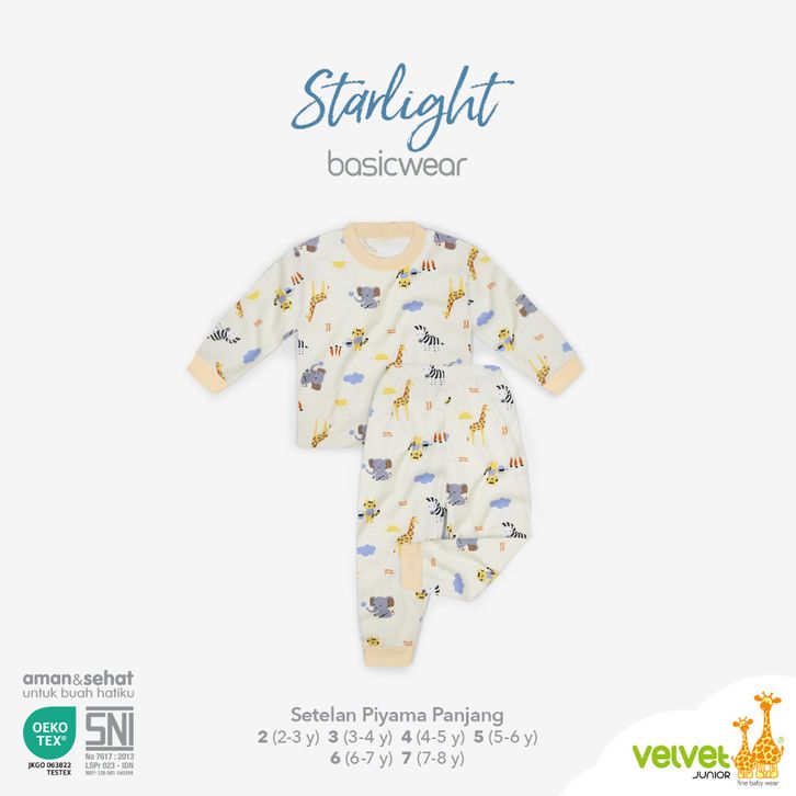 PIYAMA ANAK UNISEX VELVET JUNIOR KARAKTER BASICWEAR STARLIGHT GALAPAGOS BAJU TIDUR BAYI SATU SET ORIGINAL TERMURAH