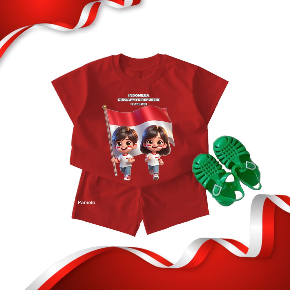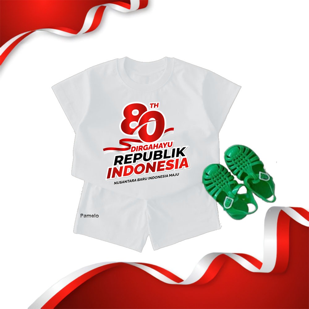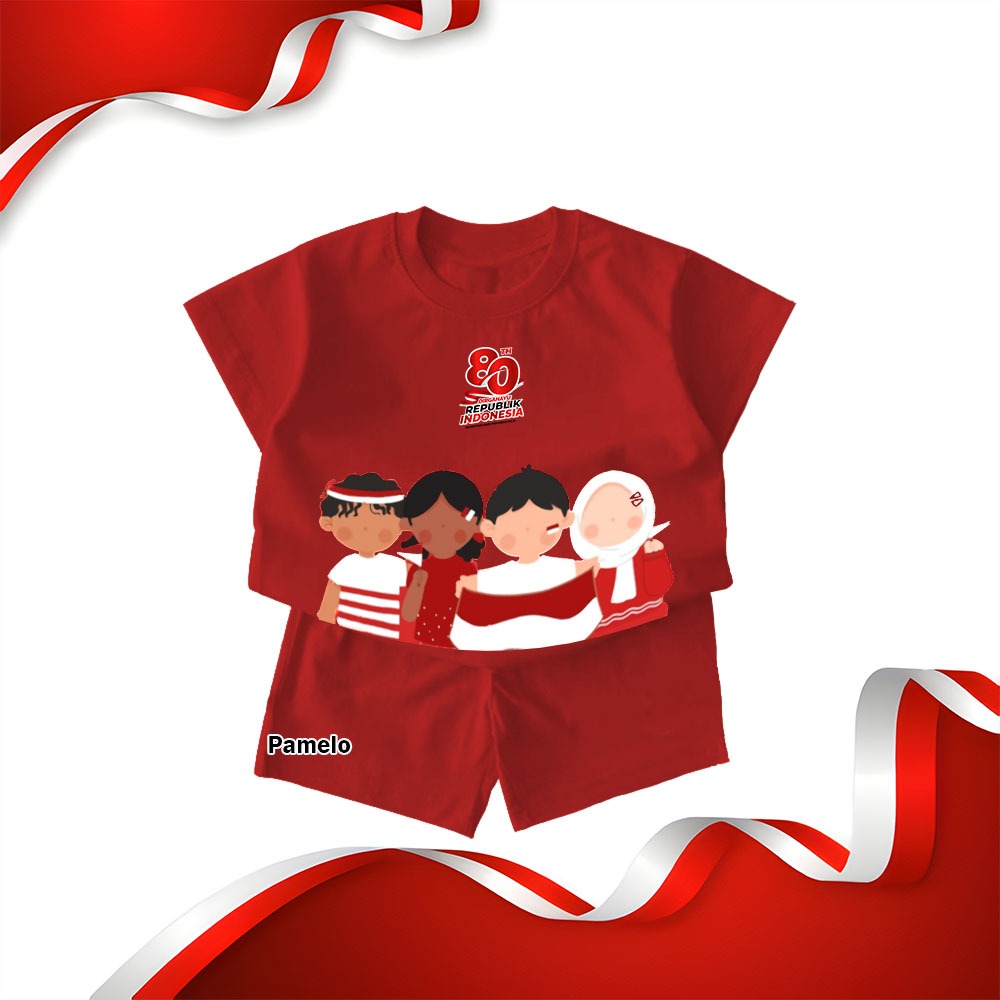 Pamelo.id Setelan Anak 17 Agustus Dirgahayu80 2025 Katun Combad 24s Baju anak Merah putih Baju Anak katun combed 24s Stelan merah putih murah katun