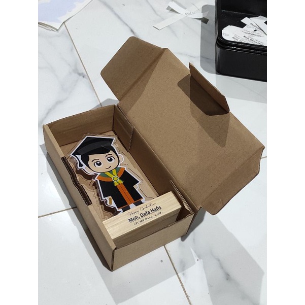 Plakat wisuda akrilik MODEL 2 (tatakan kayu) Kado wisuda Piala wisuda termurah happy graduation - Piala Wisuda Akrilik Karakter Almamater Hitam Orange