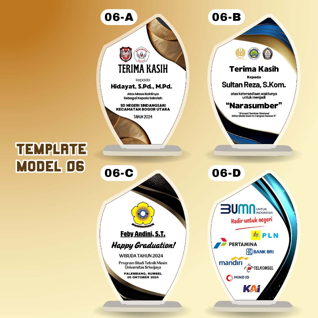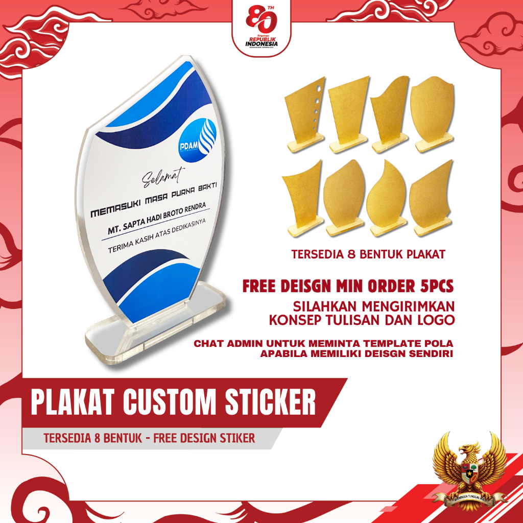 Plakat Akrilik Custom Stiker Souvenir Kenang Kenangan Hadiah Kejuaraan dan Penghargaan Trophy Vandel Akrilik Custom Stiker