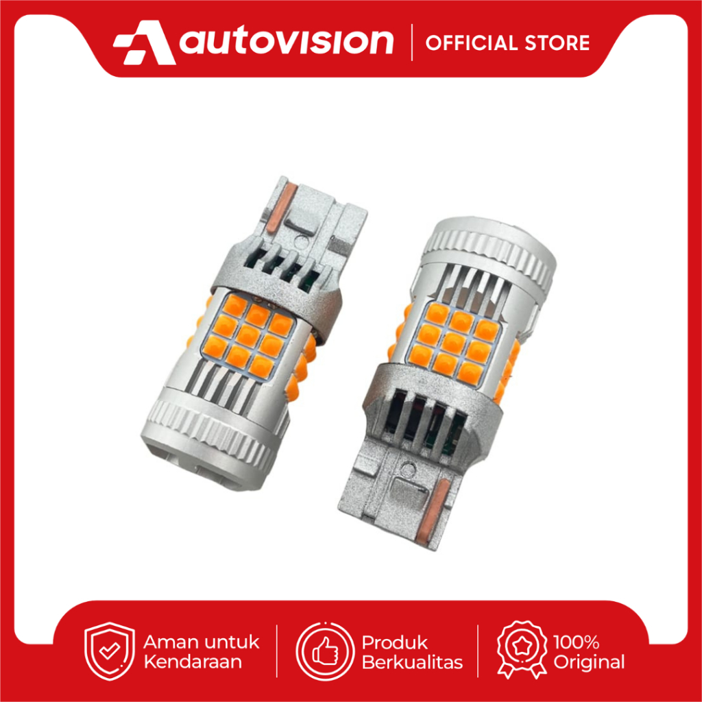 LAMPU SEIN MOBIL LED AUTOVISION T20 (7440) 36-3030SMD CANBUS NO HYPER FLASH 12V 26W AMBER