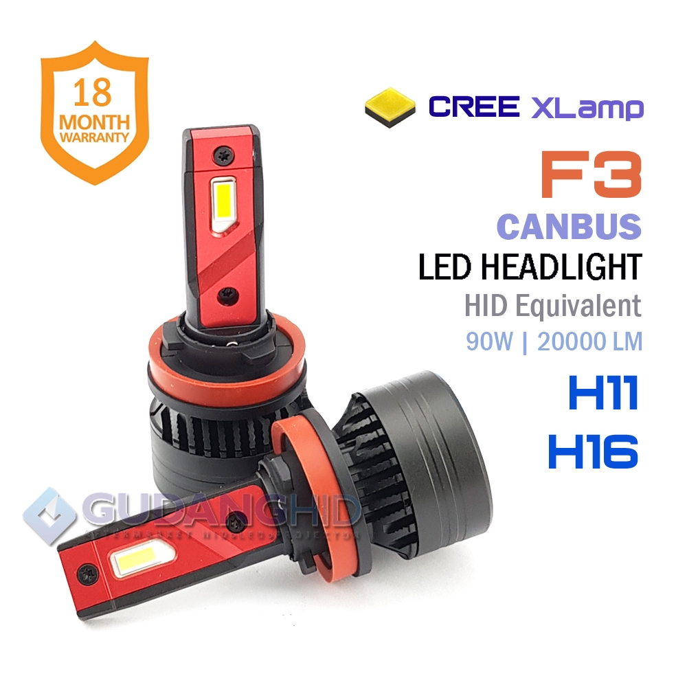 LAMPU LED MOBIL F3 90W 20000LM CREE G-XP H3 H4 H7 H11 H16 HB3 HB4 HIR2