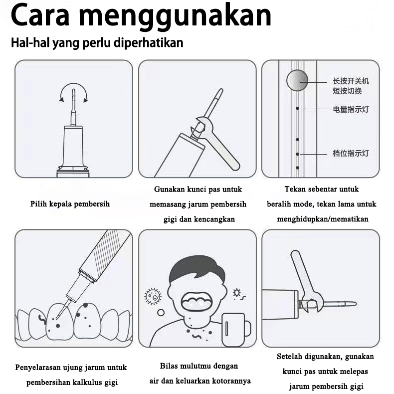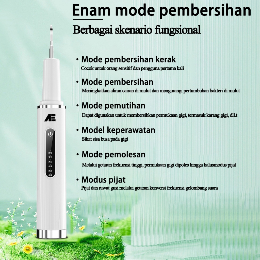 AE Pembersih Karang Gigi Alat Ultrasonic Scaling 1 Set 6 Modes With Light Portable Electric