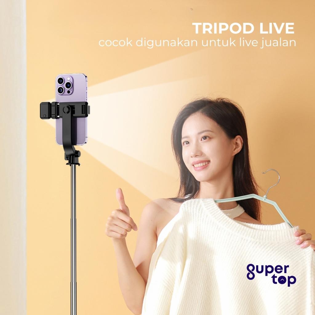 Tongsis Tripod 1,7 Meter Bluetooth + LED Lights 360 Aluminium Steel Stick Selfie Vlog Live Stand Phone