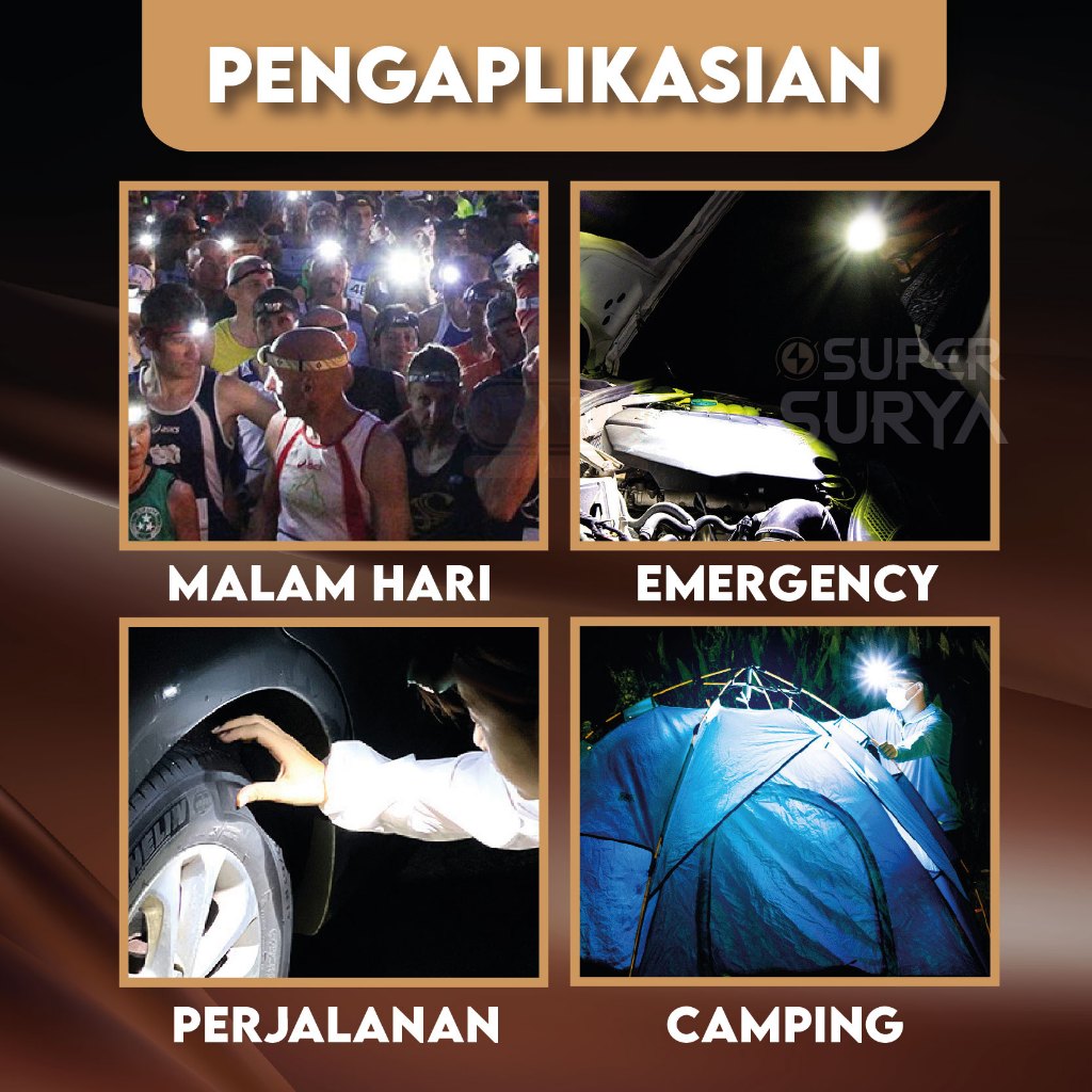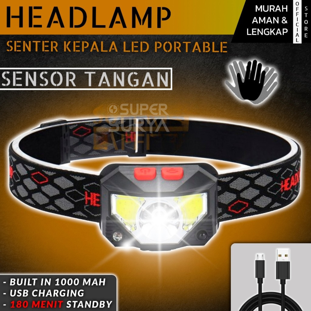 Senter Kepala Sensor Gerak Tangan 10 cm Cas USB Waterproof IPX4 Headlamp Lampu