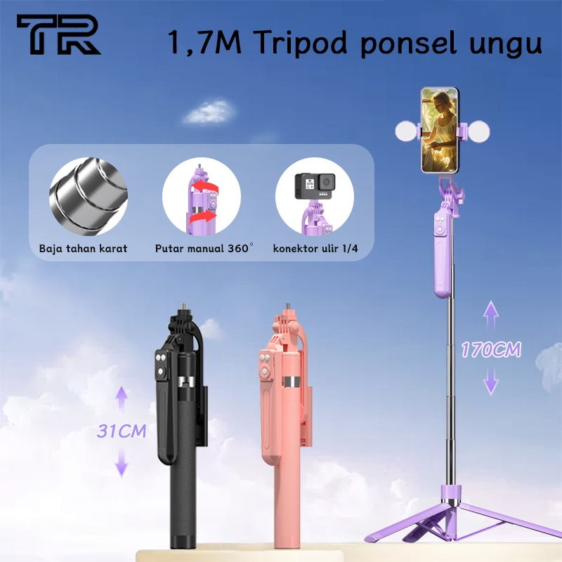 TRBEST 170CM Selfie Stick Tripod Tongsis 7 Tombol Tongkat Selfie Dengan Monopod Dengan Wireless Bluetooth Remote Control Portable Lampu Jarak Jauh Bluetooth Untuk Vlogging