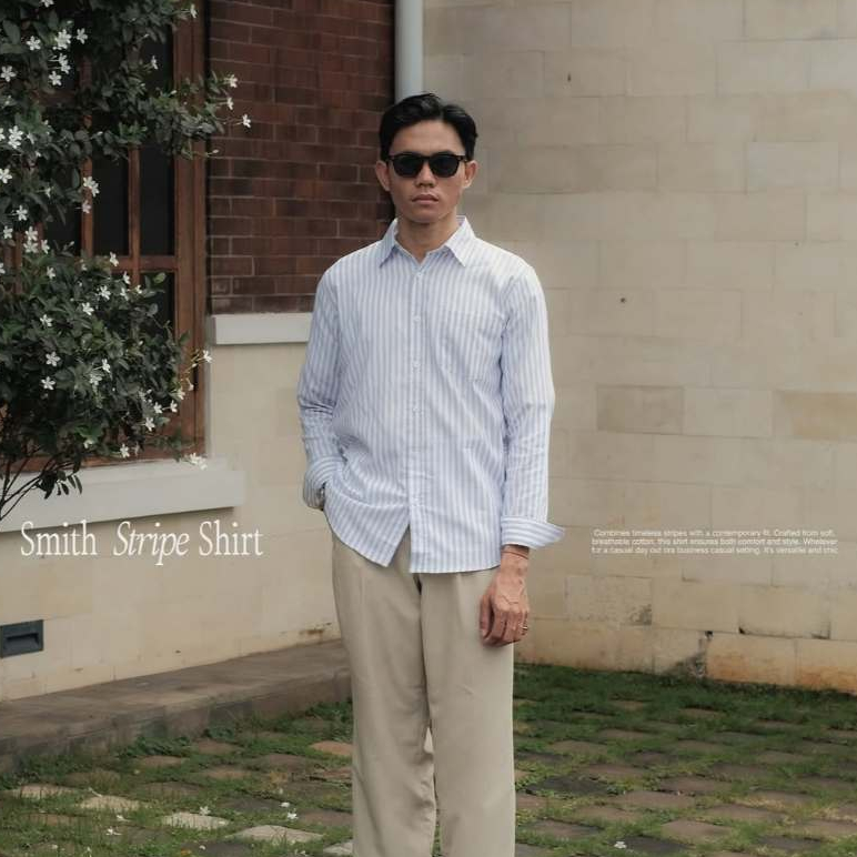Wilmerstudios Kemeja Stripe Lengan Panjang Salur Sedang All Variant