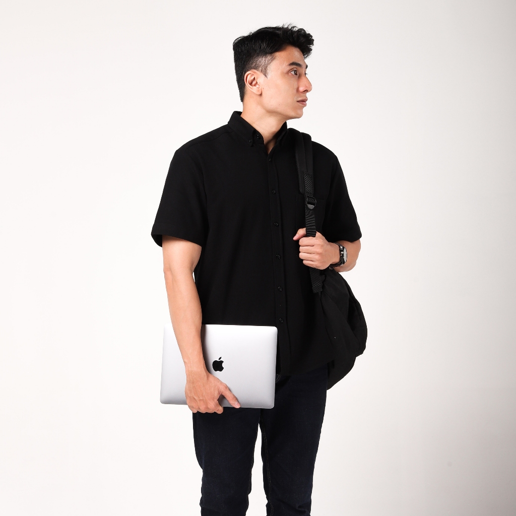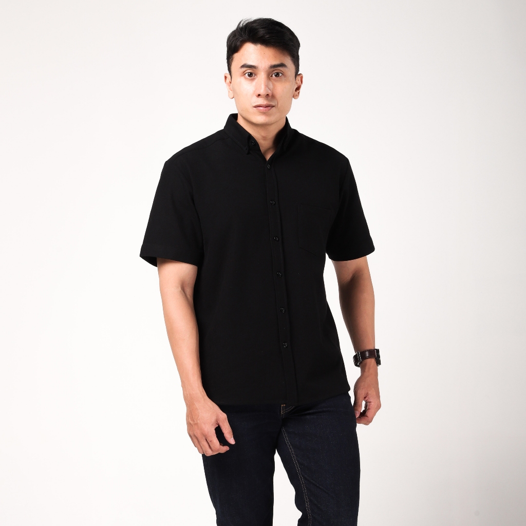 Wilmerstudios Kemeja Pique Pria Lengan Pendek Hitam